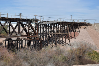 The Holton Interurban bridge across the Alamo River has sustained damage over the years since abandonment. We then drove across the sand dunes to where we spotted the next train at Sidewinder Road.
