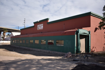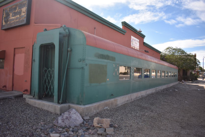 The passenger at the Mad Chef Restaurant, which unfortunately closed in 2016, is Union Pacific 5111, ex 5105, built by American Car and Foundry in1953. It is the dining room half of a twin unit diner built for the City of Denver. This car was part of the Railroader Restaurant chain in Riverside, California until the mid-1980's when that restaurant closed and the car was moved to Yuma. The two of us went to Carl's Jr. for lunch before we drove non-stop to Gila Bend.