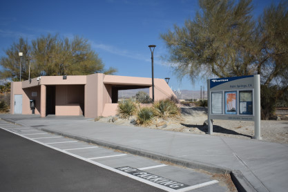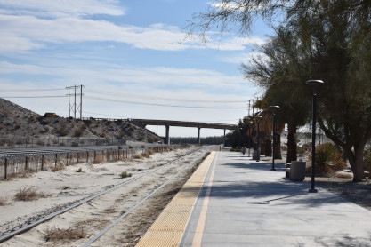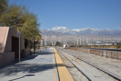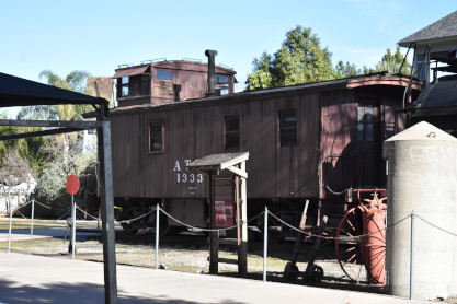 My last shot at the museum. From here we drove the length of San Timoteo Canyon and just as we were turning on Interstate 10 freeway, we saw the Missouri Pacific heritage unit on the point of a train but there was no way to turn around and get it, so we let it go. Continuing east, we decided to stop at the Palm Springs Amtrak station so Elizabeth could see it. She was not very impressed.