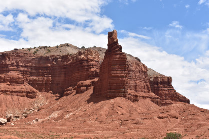 Chimney Rock and another unique geological features at Capitol Reef National Park. Next we drove the one mile dirt road to the Goosenecks.