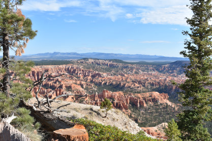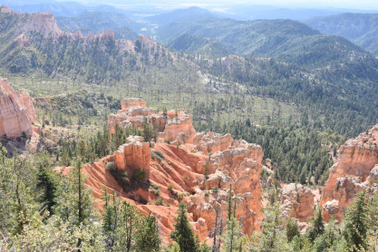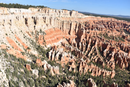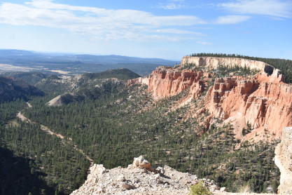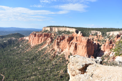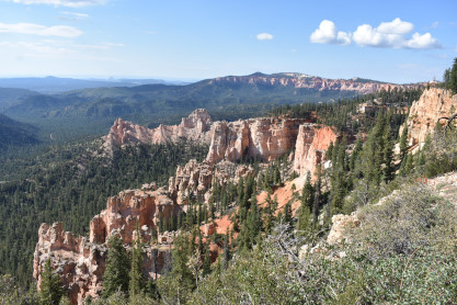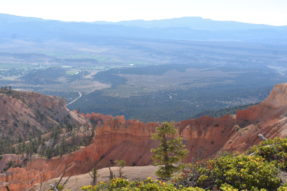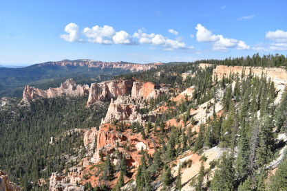 Rainbow Point, the highest part of the park at 9,105 feet, is at the end of the 18-mile scenic drive. From there, Aquarius Plateau, Bryce Amphitheater, the Henry Mountains, the Vermilion Cliffs and the White Cliffs can be seen. Yellow Creek, where it exits the park in the north-east section, is the lowest part of the park at 6,620 feet.