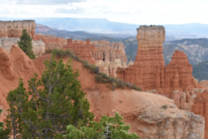 After a rough night due to a hot room and a four-hour power outage, neither of us slept very well. However, we arose at the Days Inn in Panguitch, did our morning routines before we ate a good breakfast at Kenny Rays. I drove us to Bryce Canyon National Park and used my pass to get us in. Each time, we save $35 which is the normal private vehicle rate. After an evening of rainshowers last night, the air was perfectly clear and very comfortable temperature of 53 degrees.
