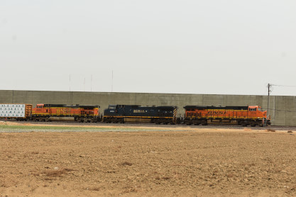 BNSF 7128 East with BC Rail 4649 as a DPU. We drove to Selma for lunch and then drove CA 99 and saw two Union Pacific trains in daylight before we turned off onto California 140 and following Elizabeth's excellent directions, the four of us made it to our surprise location for Bill and Robin. We were met by Tony Azevedo, the man who put this whole thing together and would give us a railroader's tour.