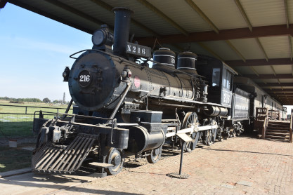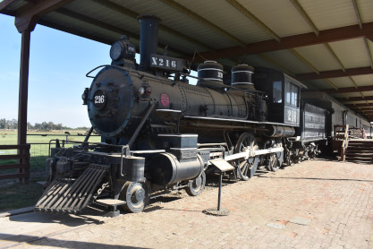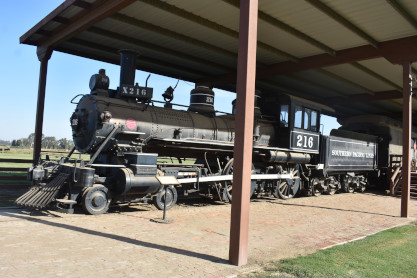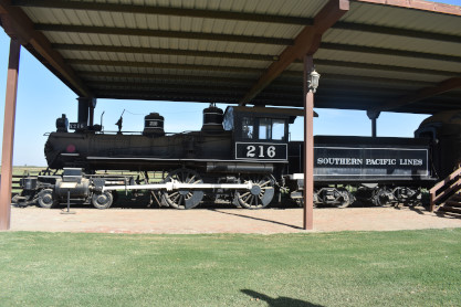 Southern Pacific 4-4-0 216 built by Baldwin in 1887. In 1904, it was sold to the Southern Pacific where it became Morgan's Louisiana & Texas 246. In 1913, 246 was renumbered 216. In 1929, the steam engine was sold to the Erath Sugar Company and worked the seventeen mile line into the cane fields at the company's Erath plant and the Vermilion plant near Abbeville, Louisiana. Retired in 1956, it was sold to Nelson F. Blount to join the Steamtown collection. In 1996, 216 was donated to the Nevada State Railroad Museum who transferred it to the Feather River Rail Society. In 2003, the Double T bought the locomotive.