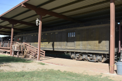 Santa Fe baggage car Railway Express Car 1772 built by the Pullman Company in 1910. It was purchased from the Electric Car Museum in Rio Vista and transported by house movers to The Double T in 2003. Tony took all of us inside.
