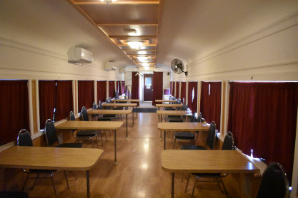 Table car in the Pennsylvania Railroad P-70 1660 used for dining car services on his train here.