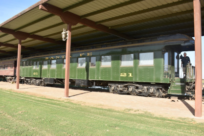 From 1947-1957 it was used primarily for transporting officials and entertaining prominent farmers of the area. Good hospitality often resulted in increased agricultural shopping business. It was then sold to the Stockton Terminal and Eastern Railroad, which used it as their stationary headquarters. The Double T then relocated car 21 from there where it had sat since 1957, to Stevinson for the History Train.