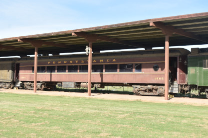 Pennsylvania Railroad coach P-70 1660 built by the Standard Steel Car Company in 1914. It was commissioned for the Pennsylvania Railroad and operated in the New York area. In 1949 1660 was completely remodeled and updated. It continued to be used as a passenger car until its retirement in the early 1960s. This car represents the first leg of an immigrant's journey west. If you were an immigrant at the turn of the 19th century entering the United States through Ellis Island, this was the type of car that would have started you on your journey west.