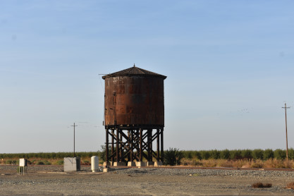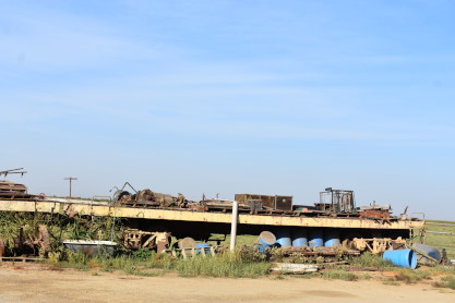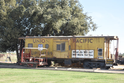 Tony then showed us other parts of his agricultural museum and I had a nice talk with him and told him of the death of Chris Parker and he was very sad as he remembered Chris being with me on my last visit and what a nice man being he was. We all thanked Tony for his hospitality and remarkable collection before it was time for us to leave. I drove us west on CA 140 to CA 33 which follows the former West Valley Line of the Southern Pacific, now California Northern. But this time we saw no trains. We did, however, see something we needed another picture of.
