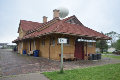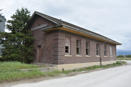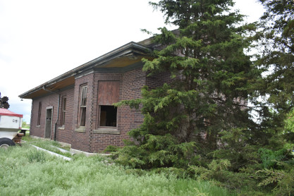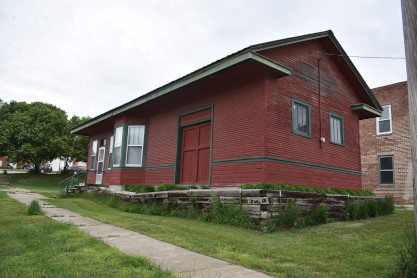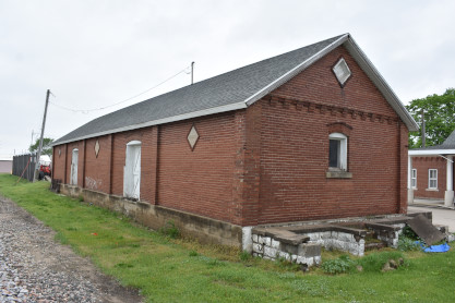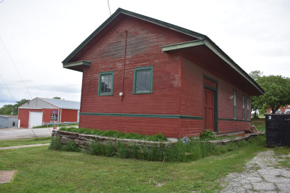 The Chicago, Burlington and Quincy brick station which has been gutted, in Greenfield. Our last stop of the day was in Carson.