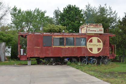 Rock Island caboose 17030 on display. It was built in 1913 as a boxcar, converted to a caboose in 1940 and purchased from a museum in Adair, Iowa.