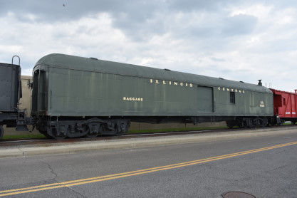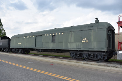Illinois Central heavyweight baggage-railway post office car, number unknown.