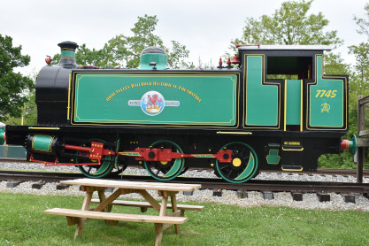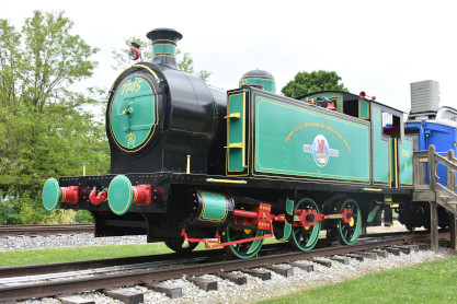 Medford Power Station 0-6-0T 7745 built by Robert Stephenson & Company in Staffordshire, England in 1952. It was named "Flying Duchess" and operated until 1970 when it was sold to the Boyne City Railroad in Grand Falls, Michigan. That railroad ceased in 1982 and it was sold to the Tennessee Valley Railroad Museum, then moved to LaGrange in 2011.