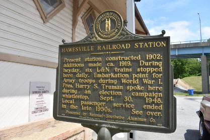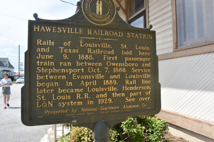 The Hawesville historical sign.
