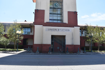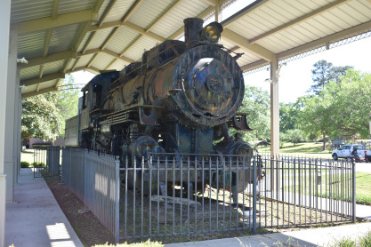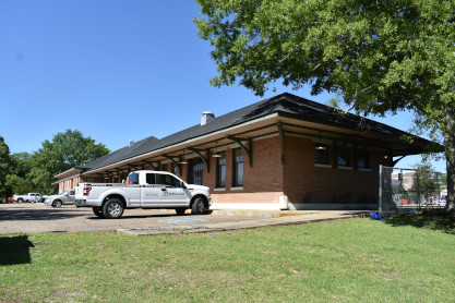 The Southern Railway station in Laurel built 1913. I drove us to the steam engine in town.