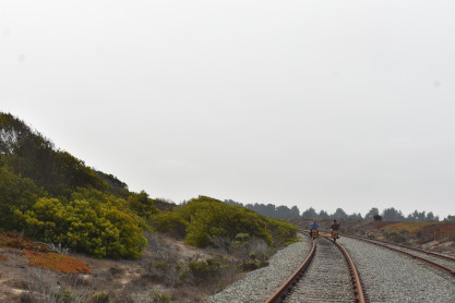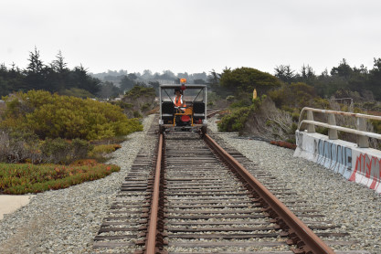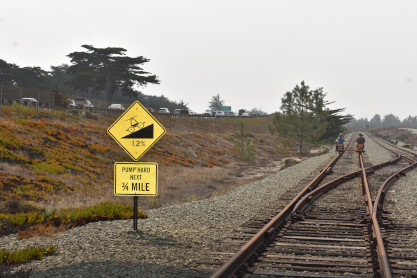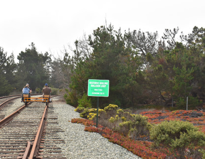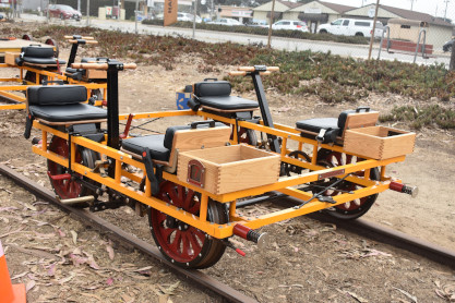 Monterey Branch HandcarsThis summer we are offering guided handcar tours across the Monterey Branch Line through Fort Ord Dunes State Park. These are handcars, meaning you provide the physical effort using your legs and arms to propel the rail vehicle. When you book one of our handcars, you are booking a car with four seats. Each handcar can carry up to four participants, but we require at least one adult on each handcar. Each participant must be at least 50 inches tall and under 300 pounds. Closed toed shoes are mandatory for all participants. Cycling gloves are helpful, but not required. The design of the handcar precludes carry infants in a sling because the pump arm comes back at the chest.