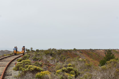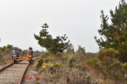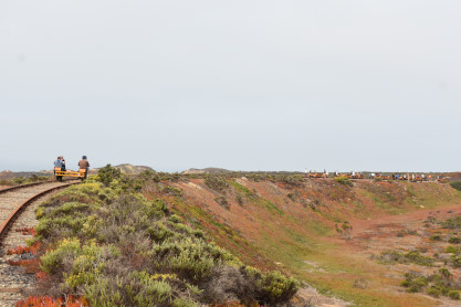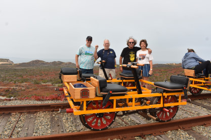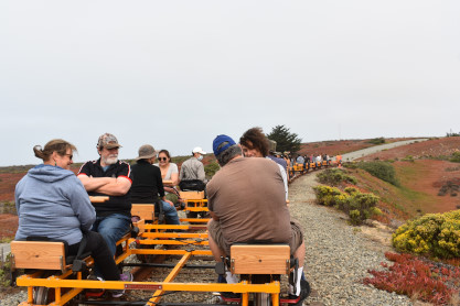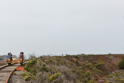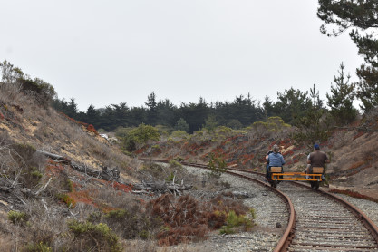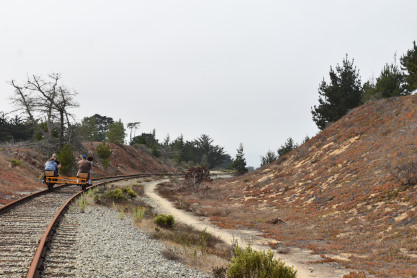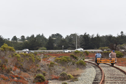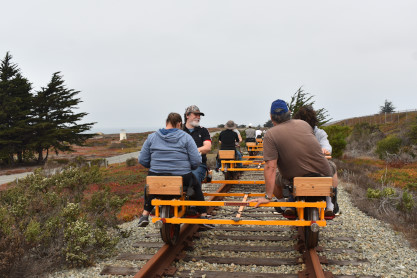 Tours begin at the corner of Palm Drive and Marina Avenue in the City of Marina. We are about 15 minutes north of famous Cannery Row. After you receive a personalized safety briefing, our tour group consisting of 12 handcars will depart south towards Fort Ord Dunes State Park. You will be led by trained guides to the front and rear, with speeds varying between 7 and 10 mph for the duration of the excursion. The experience runs about 1.5 hours, and covers six miles of the Monterey Branch Line along Monterey Bay. Each handcar is priced at $150 and carries up to four people.