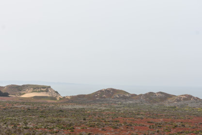 Sand dunes to the west.