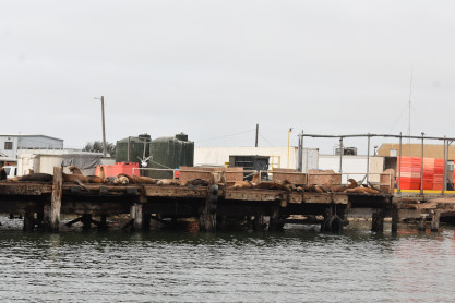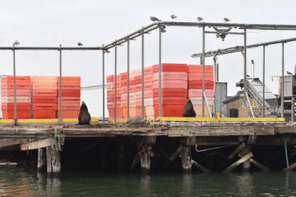 California sea lions were up on a dock and making a lot of noise with their cries.