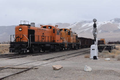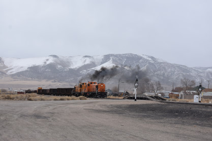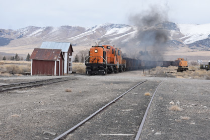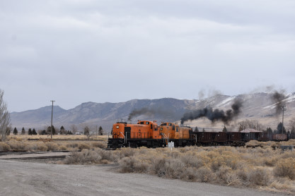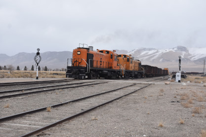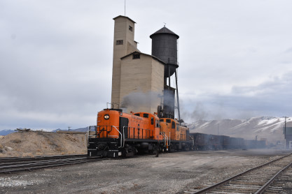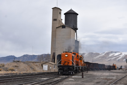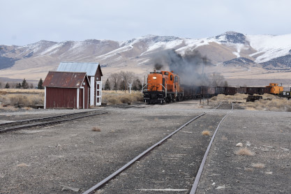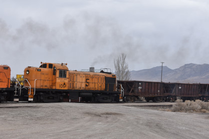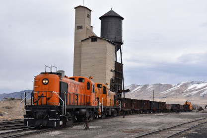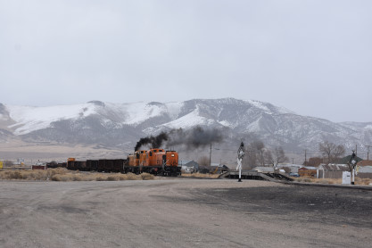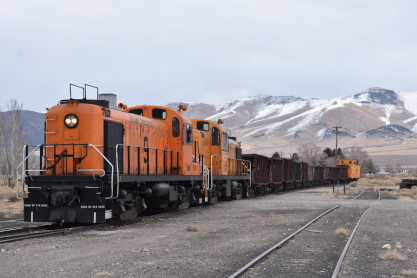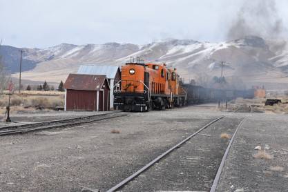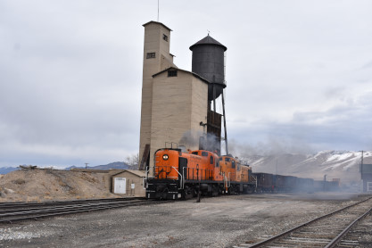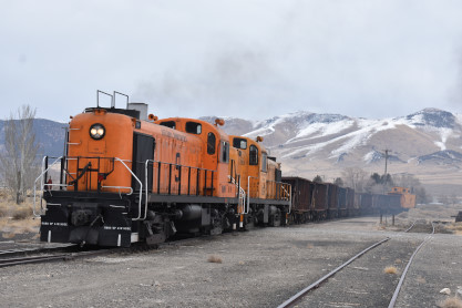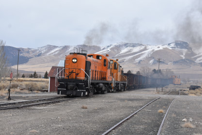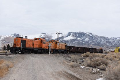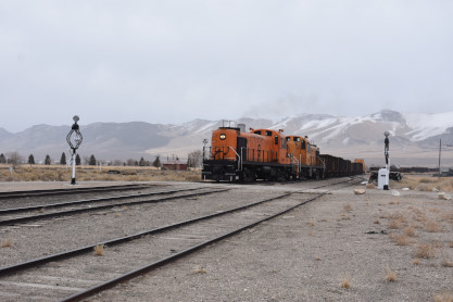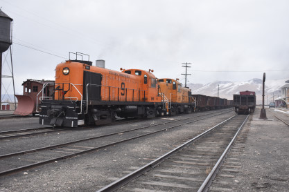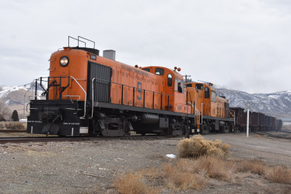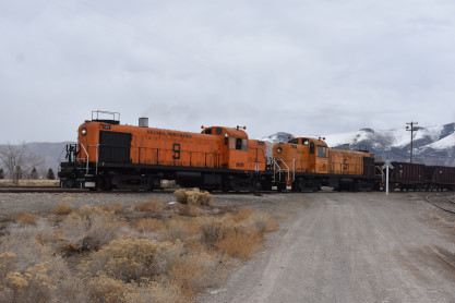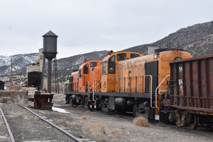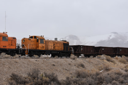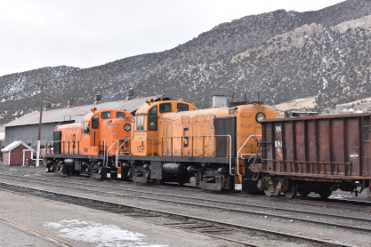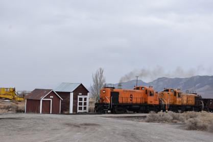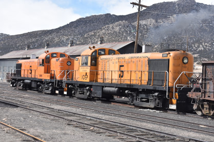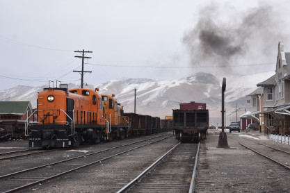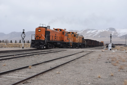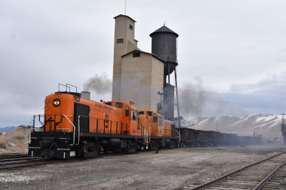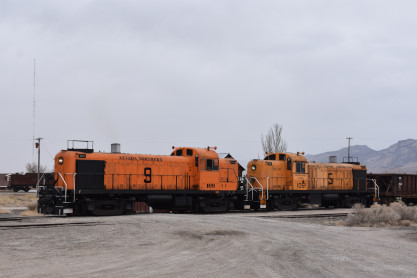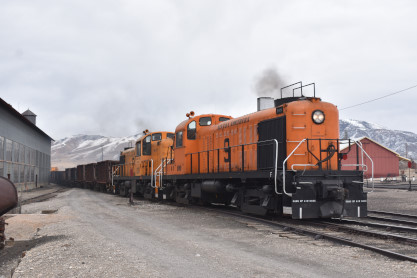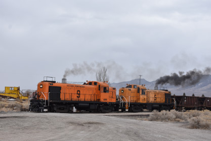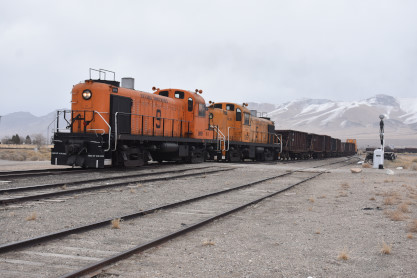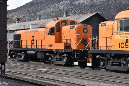 Nevada Northern RS-3 109 and RS-2 105 on the point of the ore train before it reversed down the yard. Hearing them chugging as Alcos do was music to my ears.
