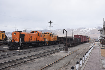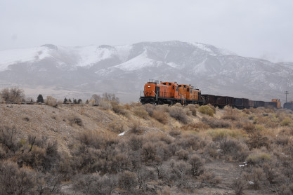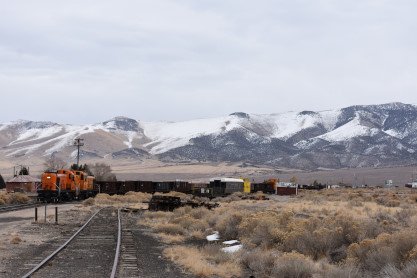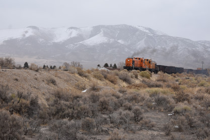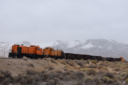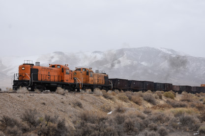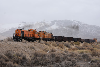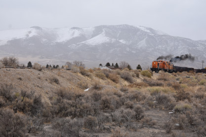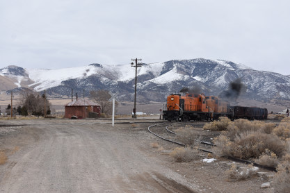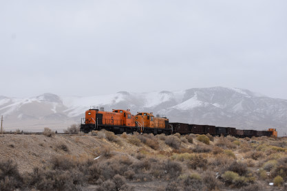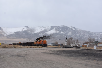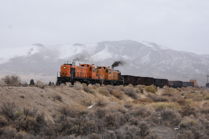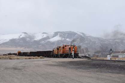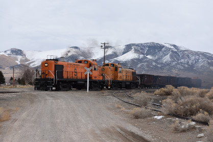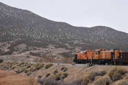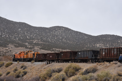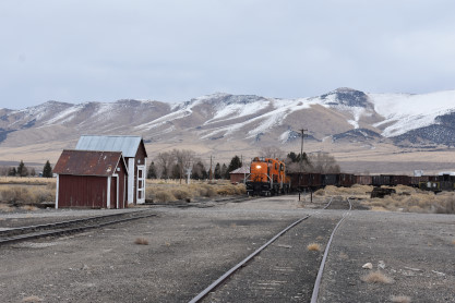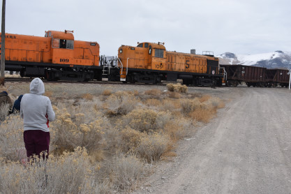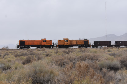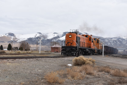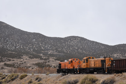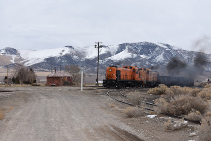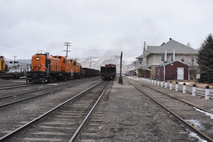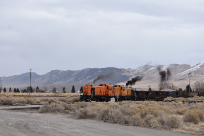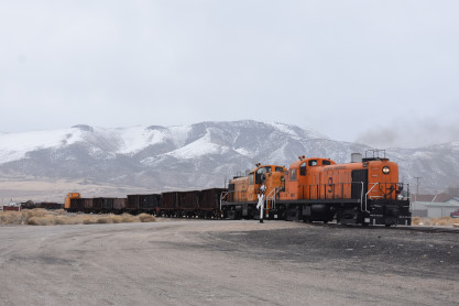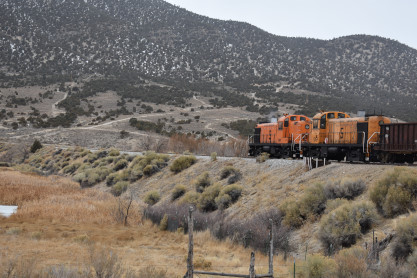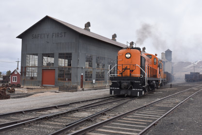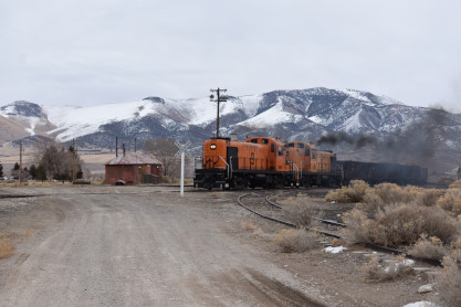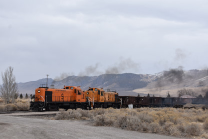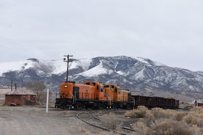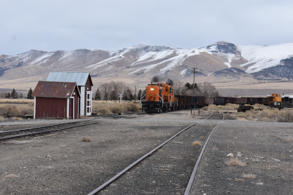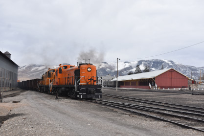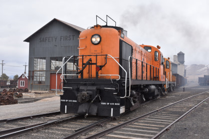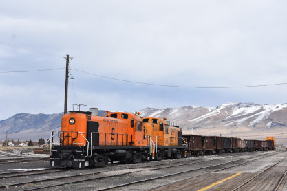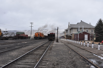 Nevada Northern RS-3 109 and RS-2 105 on the point of the ore train before it reversed down the yard. Hearing them chugging as Alcos do was music to my ears.