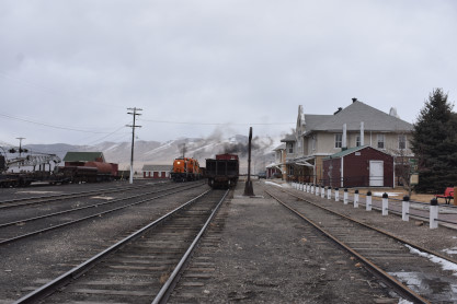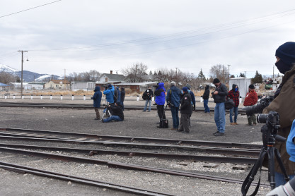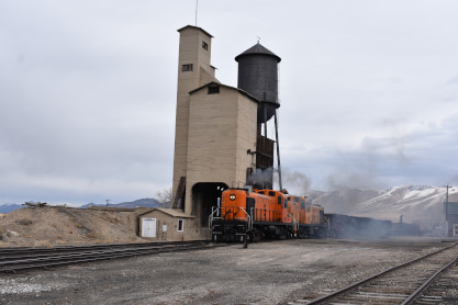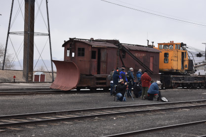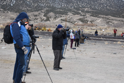 The EventThe participants in this year's Winter Photo Shoot assembled at the Depot at 1:00. Mark Bassett, the President of the Nevada Northern, introduced himself and the crew and discussed safety, the weekend's activities and the do's and don'ts. Steve Crise, who was leading the night photo session for the last time, then spoke about that event, and urged those joining the night photo session to become familiar with the manual settings on their cameras. During his talk, Steve introduced the two people who were going to be taking over in the future, Ben and Jen. With that, everyone walked over to the coaling tower for the first set of runbys. There would be two runbys in each location throughout the weekend, unless otherwise requested.