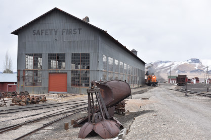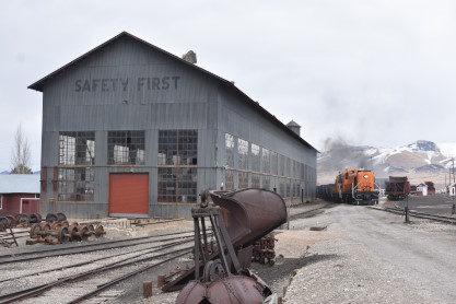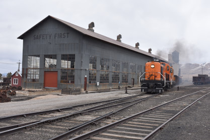 The ore train reversed past the station and switched tracks to be ready for the first photo runby.