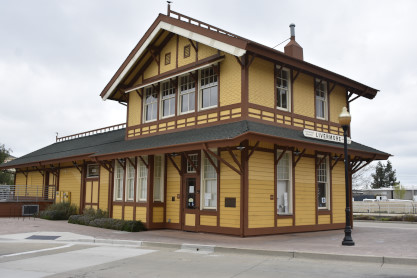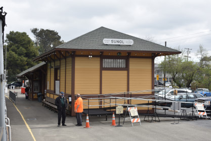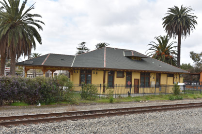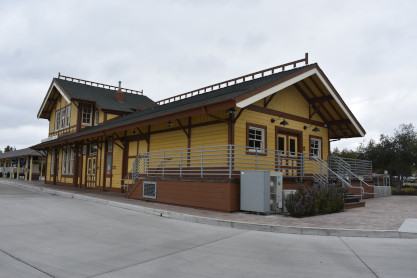 The Southern Pacific Niles station, built in 1901, as seen from the train.