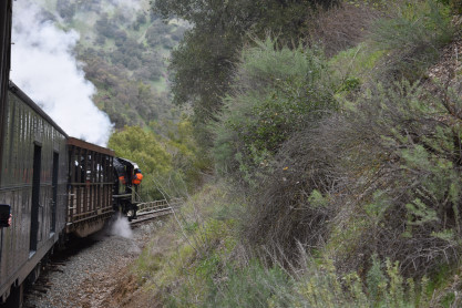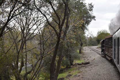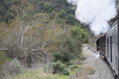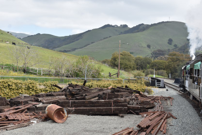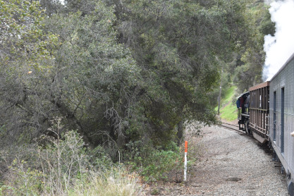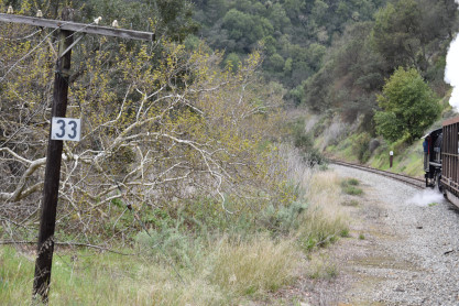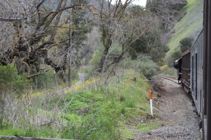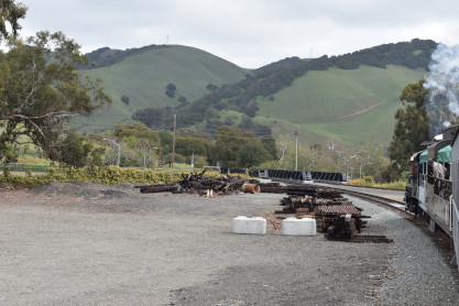 The train leaving Niles for Sunol. I took the pictures off the camera and put them into the computer so I would be able to start afresh for the next story. I labelled the pictures then relaxed for the rest of the trip. We arrived in Sunol and had to find Glenn Fountain for our member Brightside Yard tour.