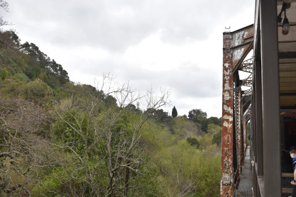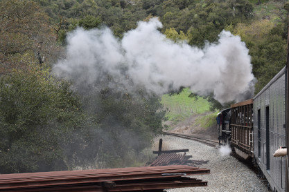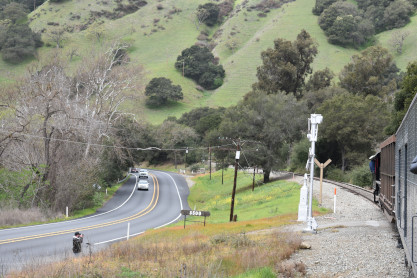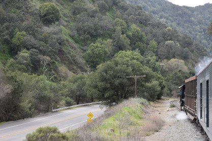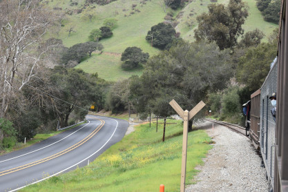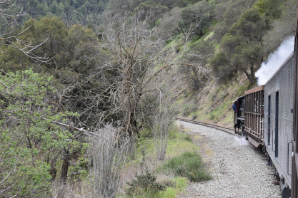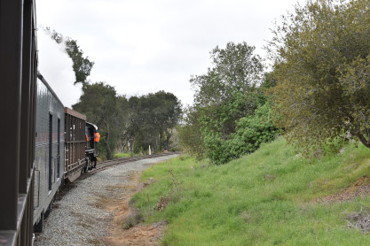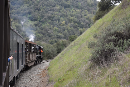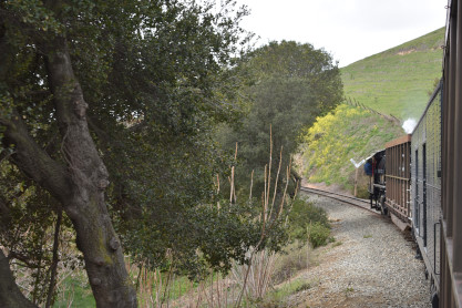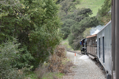 At 10:40 AM, the engine released a blowdown as the train started to move. Now sit back and enjoy a trip on the Niles Canyon Railway's first excursion of the 2021 season. This is also my first ride behind the Robert Dollar 3.