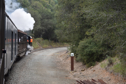 My lovely wife Elizabeth anticipating her first ride behind Robert Dollar 3. We boarded the train and took seats in our usual open car.