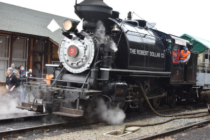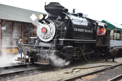 Robert Dollar 3 HistoryRobert Dollar Co. No. 3 is an operating steam locomotive on the Niles Canyon Railway. It is notable for having been the last wood-burning locomotive built for an American company. The Number 3 was built new by the American Locomotive Company for the Walter A. Woodard Lumber Company in November 1927. The Woodard Company assigned the 3 to its sawmill in Cottage Grove, Oregon. In 1942, the sawmill, and the locomotive along with it, was sold to J. H. Chambers & Son. They kept it for just four years before selling to facility and locomotive to the Lorane Valley Lumber Company in 1946. In 1951, the locomotive was sold again, to the Robert Dollar Lumber Company. The Robert Dollar company converted the locomotive to burn oil, and finally donated it to the San Francisco Maritime Museum Association. The San Francisco Maritime National Historical Park ended up not having much use for a locomotive, and she was leased in 1973 to the Bay Area Electric Railroad Association (it was eventually donated). The Western Railway Museum began restoration of the engine in 1979, but this project was not finished, and the disassembled No. 3 was donated to the Pacific Locomotive Association (Niles Canyon Railway). Restoration on Robert Dollar Company No. 3 was completed in February 2007, and she has been operating in regular excursion service ever since. In a special event in 2009, she operated side by side with Southern Pacific 2472 and Union Pacific 844.