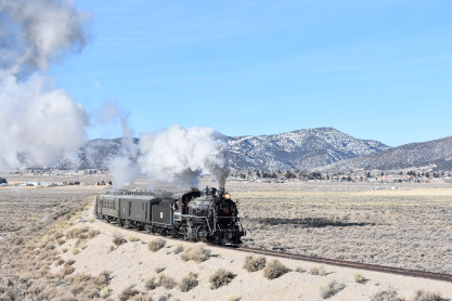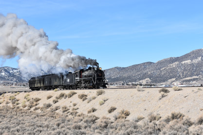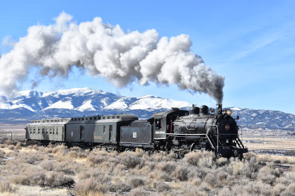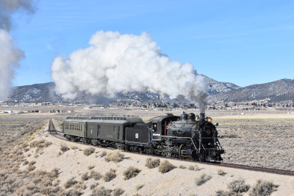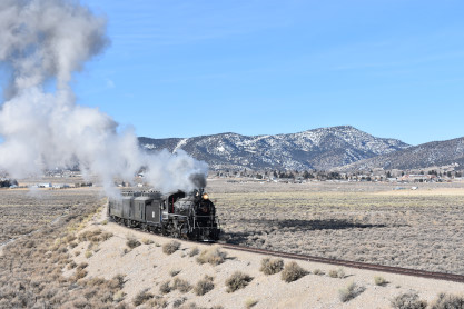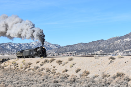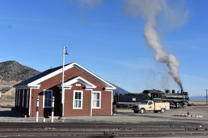 The bunkhouse where I stayed in 2019 and Nevada Northern 2-8-0 93.