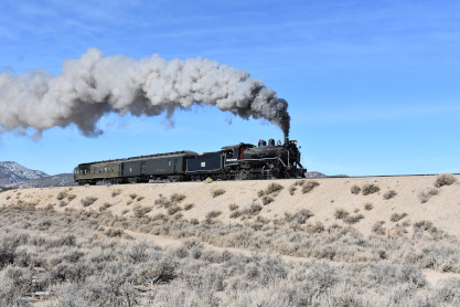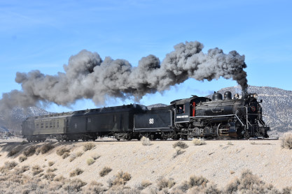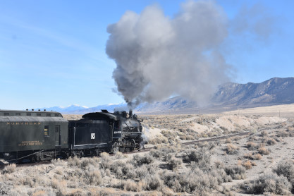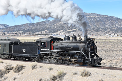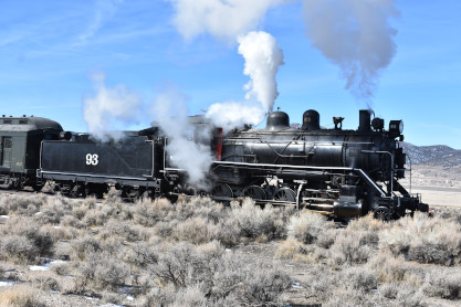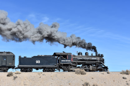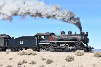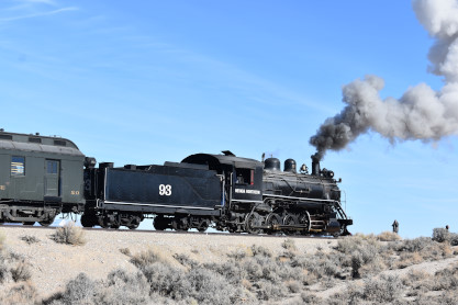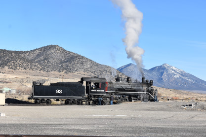 Nevada Northern 2-8-0 93. The crew was scraping out the coals which made a weird sound that Elizabeth had not heard before.