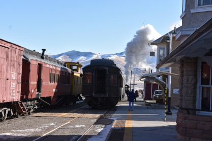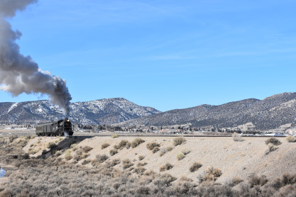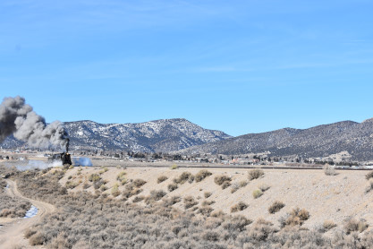 Our alarm went off at 6:00 AM but we stayed in bed until 6:15 AM when I turned on the computer and checked things. We had to scrape the ice off the windshield before we could drive to McDonald's on a very cold morning here in Ely and brought breakfast back to the room. After we ate our meals, we packed up and checked out then drove to the East Ely station. Elizabeth and I stood in the sun making us feel warmer than it really was before we walked down to the end of the platform to start photography for today.