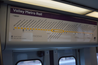 The train at Gilbert Road/Main Street station before we boarded. Now sit back and enjoy a ride aboard Valley Metro Light Rail.