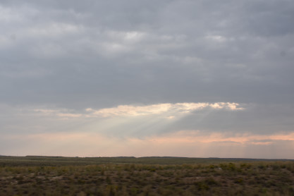 Looking back at Reno Jct. From here I drove us to Perkins Restaurant in Gillette for an early dinner. After the boys went to Walmart and we went to Osco for a few items, Elizabeth then drove us east out of Gillette.