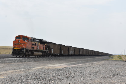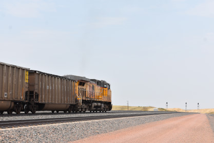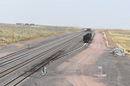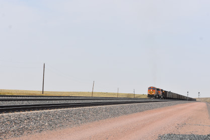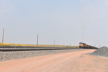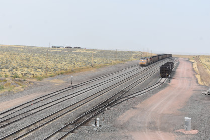 BNSF 5483 East with DPU 5740 at Robertson Road. After watching all the traffic head north down the maintanence road, we decided to follow it and made our escape back to Wyoming Highway 59. I drove us next to Reno Jct where I took the group first to the Black Thunder Mine and then back to Hilight Road.