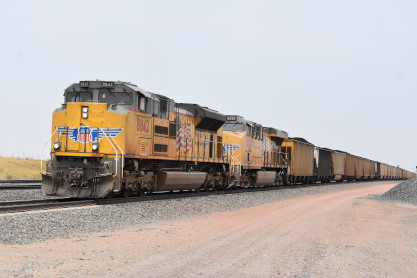 Elizabeth with Greg and Marty who were experiencing their first train in the Powder River Basin.
