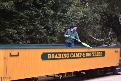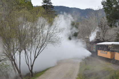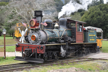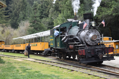 HistoryRoaring Camp Railroads operations began in 1963 under the guidance of F. Norman Clark (1935 - 1985), who was the founder and owner. His purpose was to keep a family tradition of constructing railroads and to "bring the romance and color of steam railroading back to America." In 1958, Clark found the engine Dixiana abandoned near a coal mine in the Appalachian Mountains; he described as looking like a "rusty pile of junk". Dixiana was reconditioned and began service in 1963 on rails that had been shipped around Cape Horn in 1881. The railway route was laid out so that as few trees as possible would have to be cut on the 170 acres Clark acquired with a 99-year lease of the larger Big Trees Ranch. The Big Trees Ranch was bought in 1867 by San Francisco businessman Joseph Warren Welch to preserve the giant redwood trees from logging. It was the first property in the state acquired specifically for that purpose. In 1930, the Welch family sold part of the property to Santa Cruz County, which eventually became part of Henry Cowell Redwoods State Park. The first scheduled train trip was on April 6, 1963 with 44 ticketed passengers. Clark's wife, Georgiana, Vice President of Operations assumed the ownership and management responsibilities following his death on December 2, 1985. Originally, two large trestles formed a "corkscrew" loop at Spring Canyon, but these were destroyed by a 1976 fire, the smoke from which could be seen from San Francisco. Within six months, a switchback was constructed to bypass the severed loop and the entire line was returned to service. The switchback has an estimated 9.5% grade, making it the steepest passenger grade still in use. The length of the tail tracks in the switchback restricts the trains that may be operated to six cars or fewer. Special events are held to raise funds for repair and reconstruction of the trestles and steam locomotives at Roaring Camp. In 2003, the first "Day Out With Thomas" (Thomas The Tank Engine) special event was held. The event was the single largest in the 40-year history of Roaring Camp, with an estimated 25,000 participants over a three-day period.