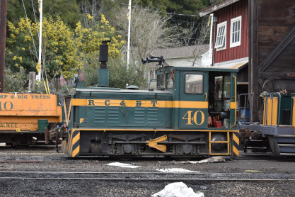 Roaring Camp and Big Trees 12 ton switcher 40 built by Plymouth in 1958. It worked for Kaiser Steel in Fontanta, California, where it was 1021, and was acquired by Roaring Camp in 1978.