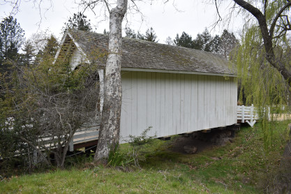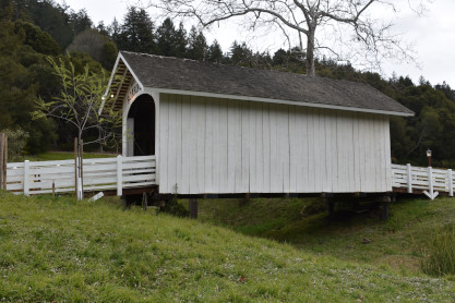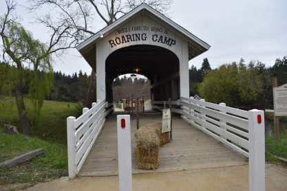 The Roaring Camp Covered Bridge built in 1969, the first Pratt-Truss covered bridge built in California since 1896 and the shortest covered bridge in the United States.