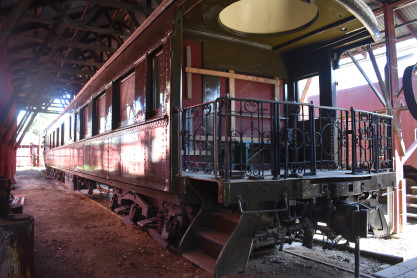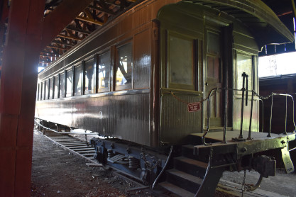 Southern Pacific observation car 2901 built by Pullman in 1910 for a cost of $50,000. Car 2901, christened "The Ferroequinologist" began its very historic life as Southern Pacific observation lounge 2901. The 2901 was assigned to various passenger duties during its tenure on Espee, most notably the company's most famous candy train of all, the Overland Limited, between 1910 and 1931. Interestingly, 2901 was originally built as a wooden car but in 1927 Espee upgraded 2901, spending $25,000 to add steel sheathing, a steel underframe and upgraded interior lighting. After its stint on the Overland, 2901 was transferred to the Northwestern Pacific and for the next ten years worked on the NWP between Sausalito and Eureka. Between 1941 and 1945, the car was transferred to the San Francisco-San Jose commute pool then found its way to the weekend-only, summer season Suntan Special between 1947 and 1956. In this service 2901 whisked beach goers and sun worshippers between Baghdad-By-The-Bay, and Santa Cruz. By this late date 2901 had outlived its usefulness to the railroad and was scheduled to be scrapped.