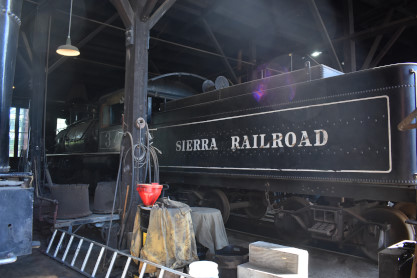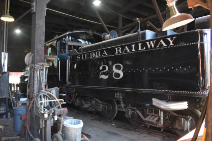 Sierra Railway 2-8-0 28 built by Baldwin in 1922. It was ordered to haul heavy freight and in the 1930s, also transported materials to the Hetch Hetchy dam site. After completion of the project, 28 returned to hauling freight. After dieselisation in 1955, it went into storage at the Jamestown roundhouse, occasionally steamed up for filming and excursions. It was derailed on an excursion in 1963 and retired with damaged air brakes. Repaired by 1971 for the opening of Railtown 1897, it then regularly pulled the "Motherlode Cannonball" excursion from Jamestown to Fassler. It also appeared in several films and in 1999, moved to Old Sacramento to participate in Raifair '99.