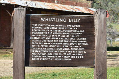 The historical marker. I met Elizabeth in the gift shop and we bought T-shirts, a magnet and lapel pins. We would like to thank Railtown 1897 for an excellent trip and we will bring our friends to this sometime in the future.