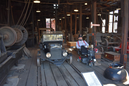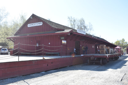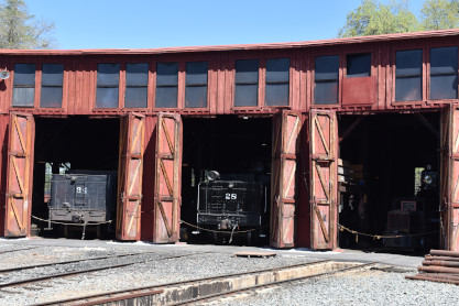 The engine ran around the train in preparation for the return trip. I relaxed the rest of the way back to Jamestown. Once at Jamestown, I took Elizabeth over to the roundhouse so she could have her first look at the collection of engines and other items.