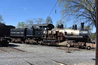 Railtown 1897 3 truck shay 7, ex. Al Nichol 7 1980, exx. Glen Bell 7 1977, exxx. Pickering Lumber Corporation 7:2 1947, exxx. Standard Lumber Company 80 1939, nee Fruit Growers Supply Company 5, built by Lima Locmotive Works in 1925.