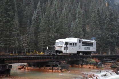 The SP-18 consist will include the 3278 P-Box, standard coach, Red Mountain coach, and gondola. The Galloping Goose seats a total of 27. No concession car will operate. Instead, the Red Mountain will serve as the bar car as well as for seating. A box lunch and water will be provide and is included in the fare. Additional snacks and beverages are available for purchase. You are welcome to bring your own snacks and beverages (non-alcoholic only) if you wish. We will be on the rails all day, both days