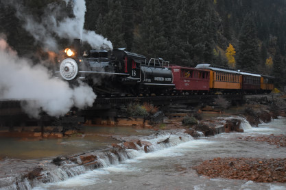 Trip InformationUnlike the regular excursion trains, Photographer Special Trains allow you to de-board at pre-determined locations along the route to experience the pure majesty of early autumn in the San Juan Mountains, form a photo line as the train backs up and out of sight and with two blasts of the whistle, proceed forward steaming past you, shutters clicking and video rolling! Opportunities abound to photograph these historically significant trains against a backdrop of the high mountain peaks of the Rocky Mountains of southwest Colorado while enjoying the vibrant autumn colors and the free-flowing Animas River! This will be a trip where you will make lifelong memories!