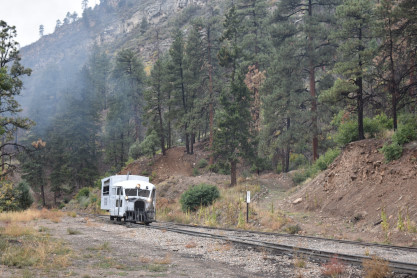 Reverse move of Galloping Goose 5 at Pinkerton siding.